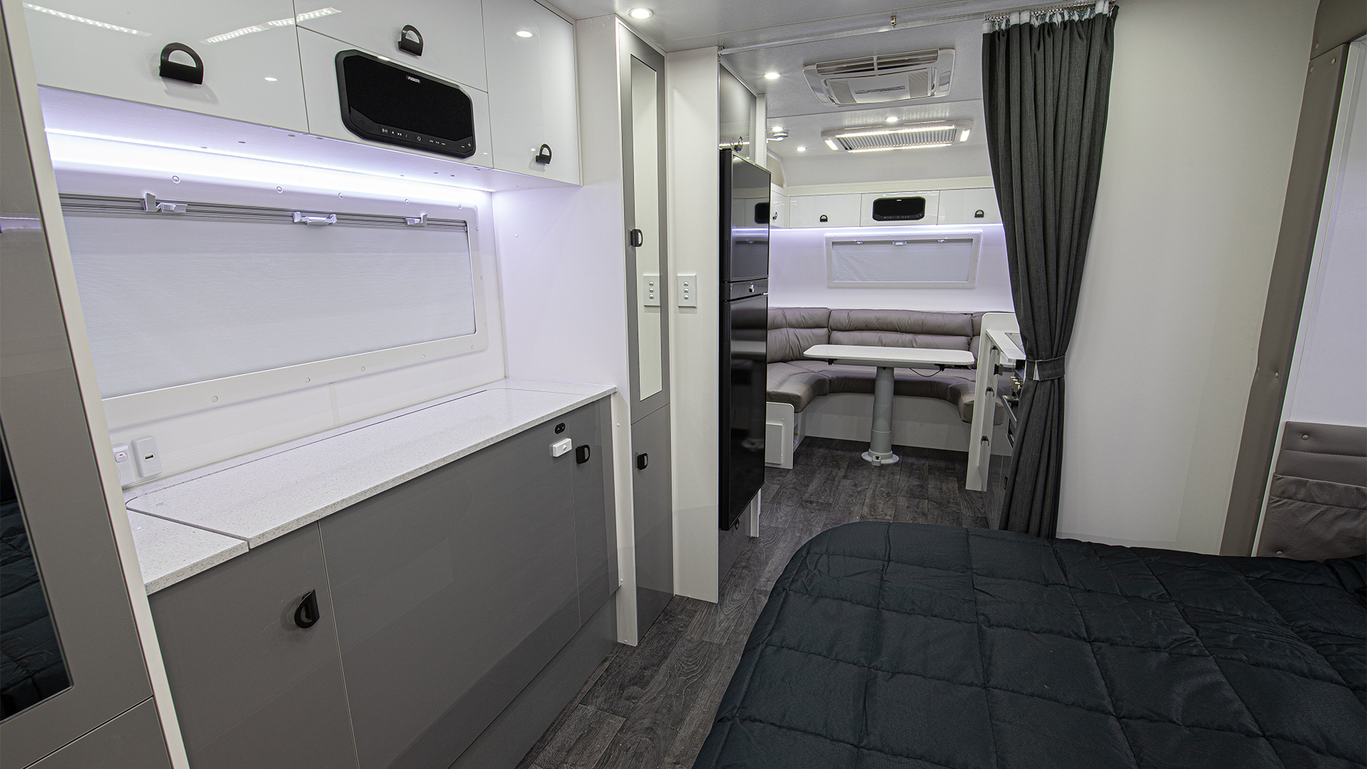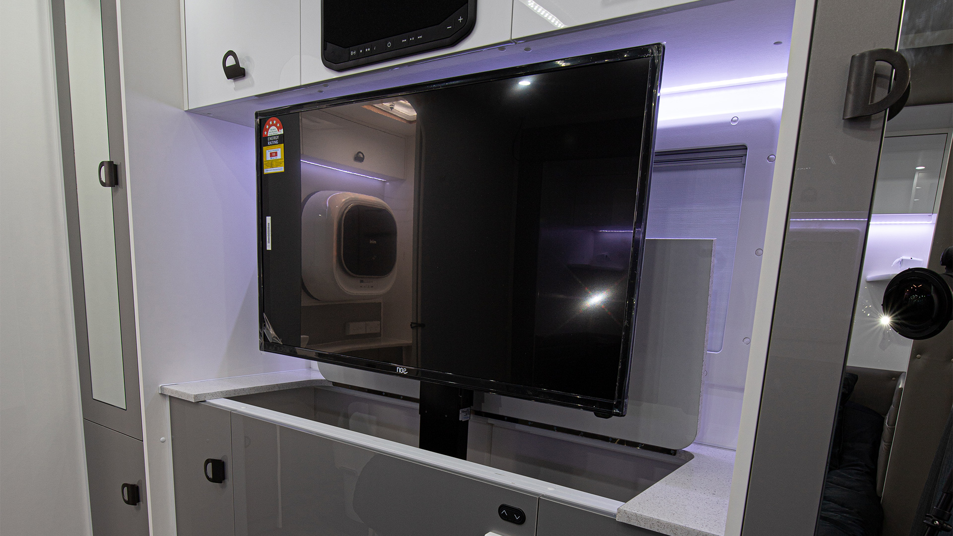 Packed with smart features like wireless chargers, an electric awning, stylish strip lighting, and two TVs—a 40-inch pop-up in the bedroom and another in the spacious club lounge—it’s designed for modern living. Add in 2 x 110L freshwater tanks, 2 x 200W solar panels, and 2 x 110AH lithium batteries, and you’re ready for seamless, off-grid adventures.